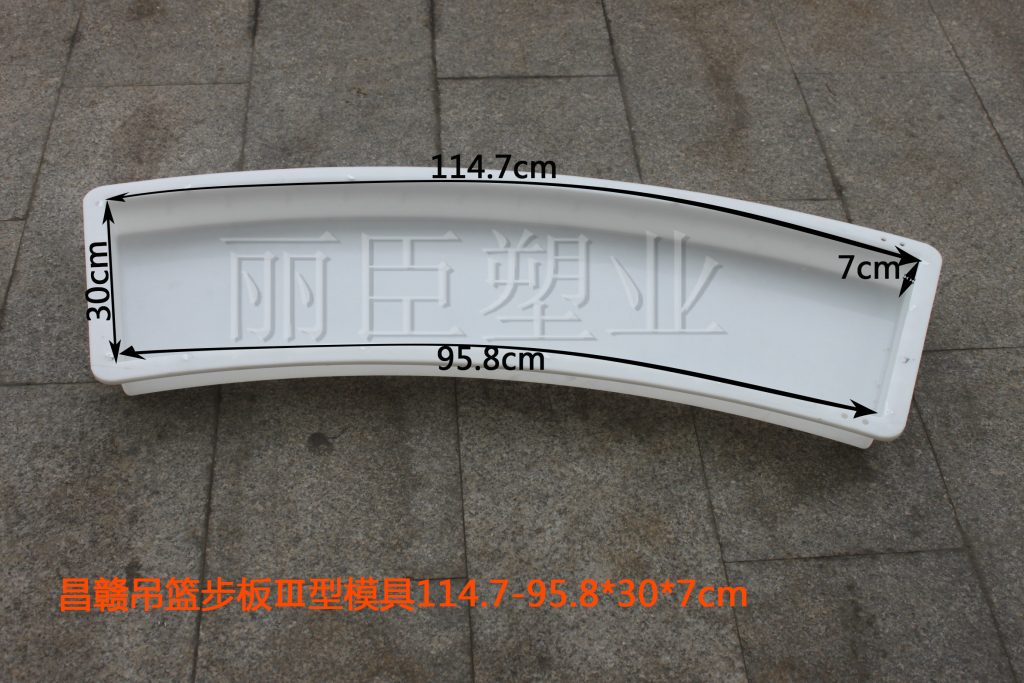 水泥吊籃步板塑料模具主要用于預(yù)制高鐵橋墩吊籃上的檢查步板,此款模具系列為昌贛高鐵線路專用,共分為I、II、III、IV四個型號,由直行吊籃步板塑料模具及彎道圓弧吊籃步板塑料模具組成,其中I型為直行樣式,II、III、IV為圓弧樣式。