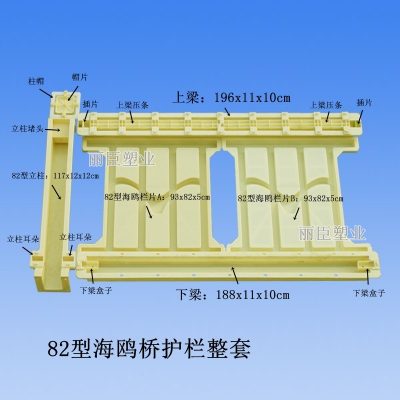 專用于國家高鐵橋梁建設(shè),采用全新ABS工程塑料經(jīng)過高溫注塑加工而成的高鐵橋梁圍欄模具,主體欄片采用海鷗圖案設(shè)計,共分為三個組成部分。