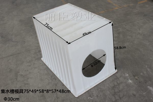 此款產(chǎn)品為客戶定制水泥集水槽模具,使用全新聚丙烯塑料原料,其中集水槽模具長度為75厘米,寬度為49厘米,深度積水區(qū)高度為57厘米,稍淺積水區(qū)為58.8厘米,實(shí)際高度深淺主要取決于預(yù)制水泥集水槽成品,具體詳細(xì)尺寸可參考下圖: