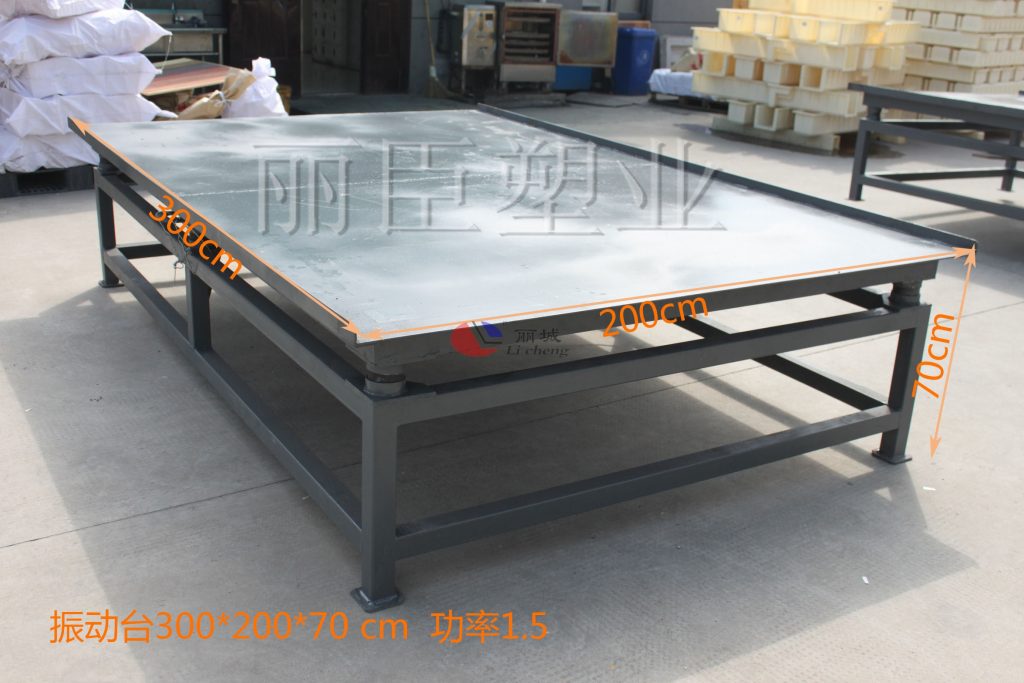澆筑的塑料模具尺寸不同,在制作振動臺時使用的功率也不一致。如較為大型的護(hù)欄、電纜槽塑模或定制的大型鋼模具上,使用在振動臺下的振動器的功率要有所增大。而對于小型的護(hù)坡、蓋板以及路沿石塑料模具這一塊上,使用振動器上的公率要有所減少。除了在模具澆筑過程中可以使用外,后期模具在脫模過程中也能進(jìn)行使用,實現(xiàn)一機(jī)兩用的效果。
