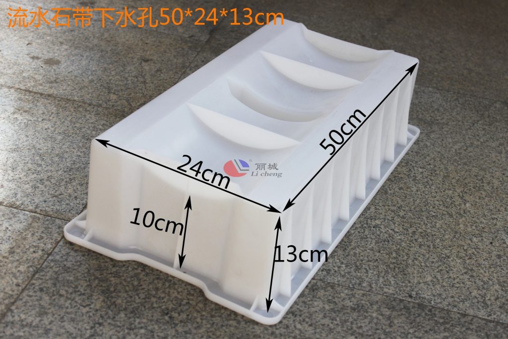 這款流水石蓋板模具的設(shè)計(jì)使用上大多數(shù)以市政基礎(chǔ)建設(shè)上使用為主,這款蓋板模具的澆筑出來(lái)的水泥預(yù)制品,呈現(xiàn)形狀為U型的流水槽,大多安裝在公路、公園道路兩邊。其主要的作用是能多方面聚集雨水、污水,用于積水的排放。