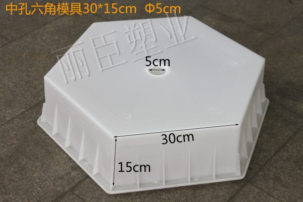 通過采用PP聚丙烯塑料注塑成型的中孔水泥六角磚模具,在后期澆筑水泥制品過程中能較為便利的進行生產(chǎn),對于在澆筑過程中施工方的野蠻敲打下,中孔六角模具依舊能保持原有的特性。