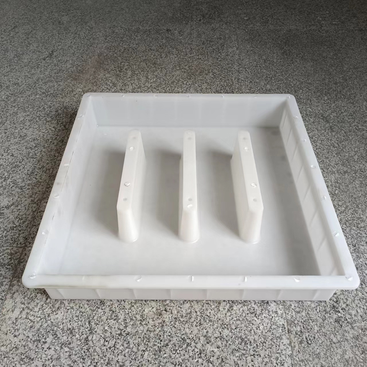 三孔雨水蓖塑料模具,模具采用米白色PP材質(zhì)制成,模具尺寸為60cm*60cm*11cm,模具開(kāi)始設(shè)計(jì)尺寸為60cm*60cm*10cn,因?yàn)樾枰浞诌_(dá)標(biāo),所以模具厚度尺寸實(shí)際尺寸比設(shè)計(jì)尺寸厚1cm,模具采用三孔設(shè)計(jì),具體尺寸如下設(shè)計(jì)圖。主要用于道路下水使用,且厚度厚,可以承載較大的壓力。
