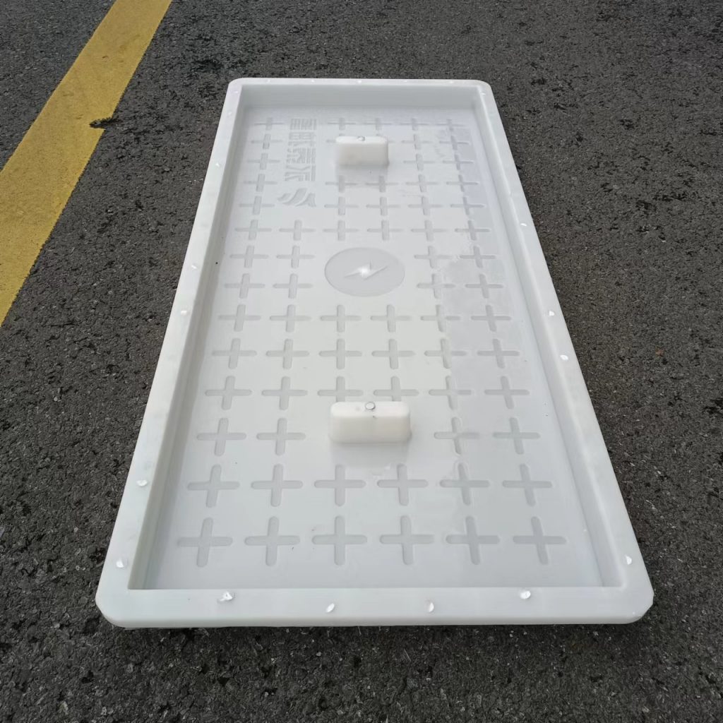 產(chǎn)品為米白色pp材質(zhì)制成,版面帶十字花紋,中心帶有電力標志,兩側(cè)帶二孔,方便提拉,右下角帶有“永泰抽蓄”四字,為客戶定制產(chǎn)品,模具尺寸還有90cm長度,里面花紋基本一至,預制成型后電力蓋板。