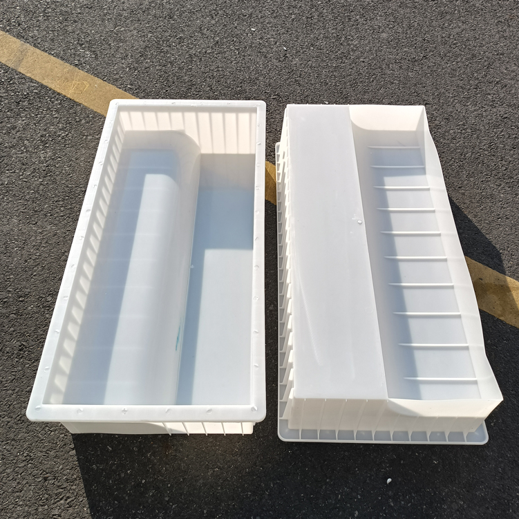 路緣排水溝塑料模具產(chǎn)品,主要是路緣石預(yù)制,二維尺寸設(shè)計圖如下,主要是市政道路、小區(qū)使用。預(yù)制成品模具可重復(fù)多次使用。
