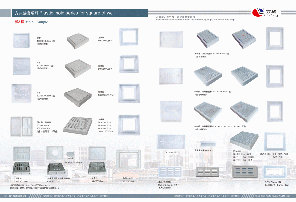 20-21:方井檢查井蓋系列 ? ? ? ? ? ? ? ? ? ? ? ? ? ? ? ? ? ? ? ? ? ? ? ? ? ? ? ? ? ? ? ? ? ? ? ? ? ? ? ? ?22:水表箱、路燈箱、燃?xì)庀?a href="http://www.dfstar.cn/">塑料模具系列