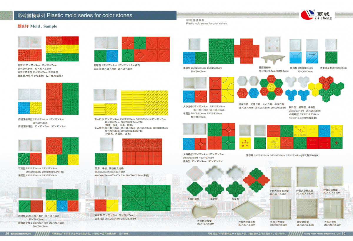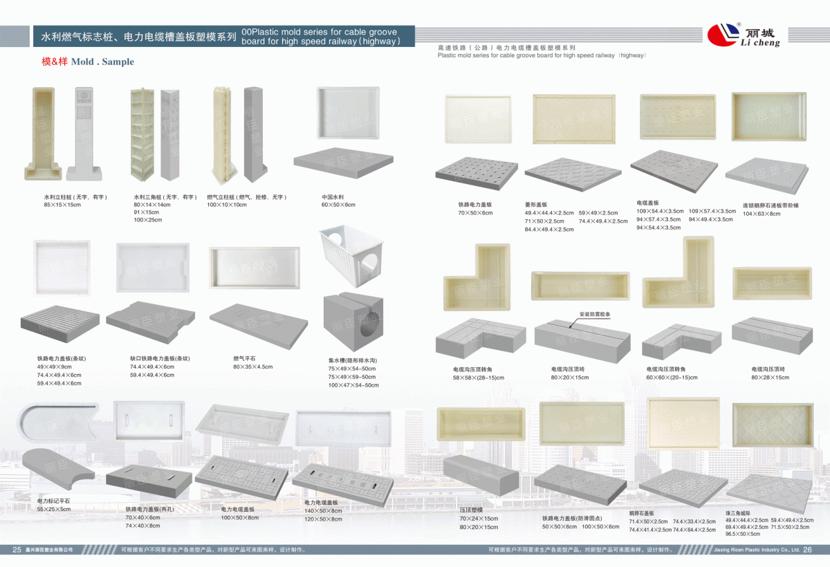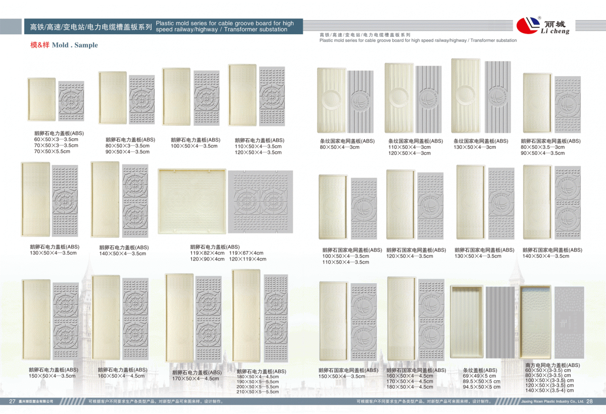 27-28:高鐵、高速、變電站、電力電纜槽蓋板系列 ? ? ? ? ? ? ? ? ? ? ? ? ? ? ? ? ? ?29-31:彩磚塑料模具系列