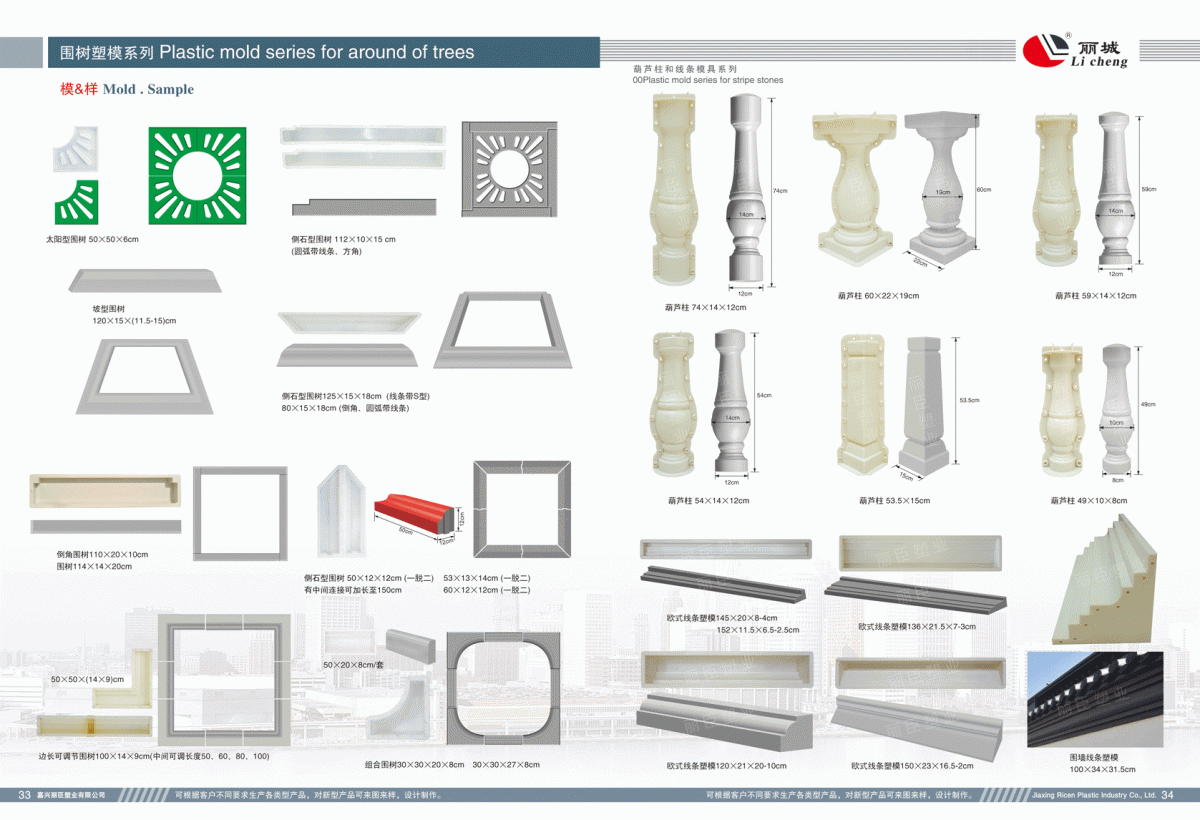 32-33:植草磚模具及圍樹磚模具系列 ? ? ? ? ? ? ? ? ? ? ? ? ? ? ? ? ? ? ? ? ? ? ? ? ? ? ? ? ? ??34:葫蘆柱模具及歐式裝飾線條模具系列