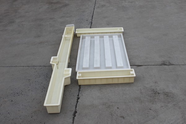 欄片模具則采用PP聚丙烯材質(zhì),更好的模具韌性對施工面積較大的水泥制品更為有利。水泥護欄欄片模具的尺寸為149.5×96.5x9cm,采用5幅式欄桿設(shè)計。
