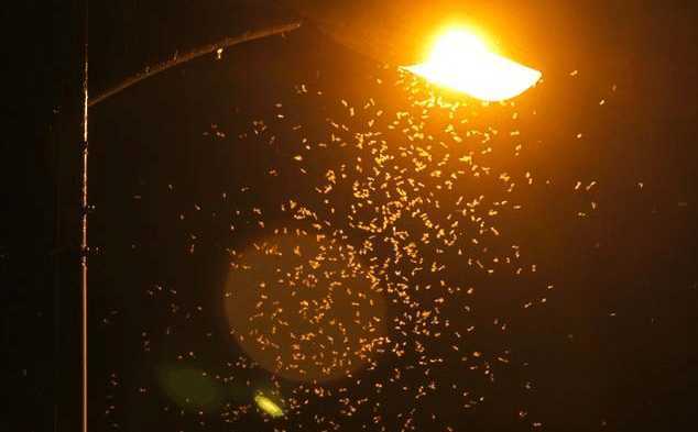 2、滅蚊燈周圍不能有強光源照射,否則會影響誘蚊效果。可以看一下下面這張圖,即便是普通的路燈,也能夠吸引很多蚊蟲過來。如此一來,室外滅蚊燈能夠吸引到的蚊蟲就被“分流”了。